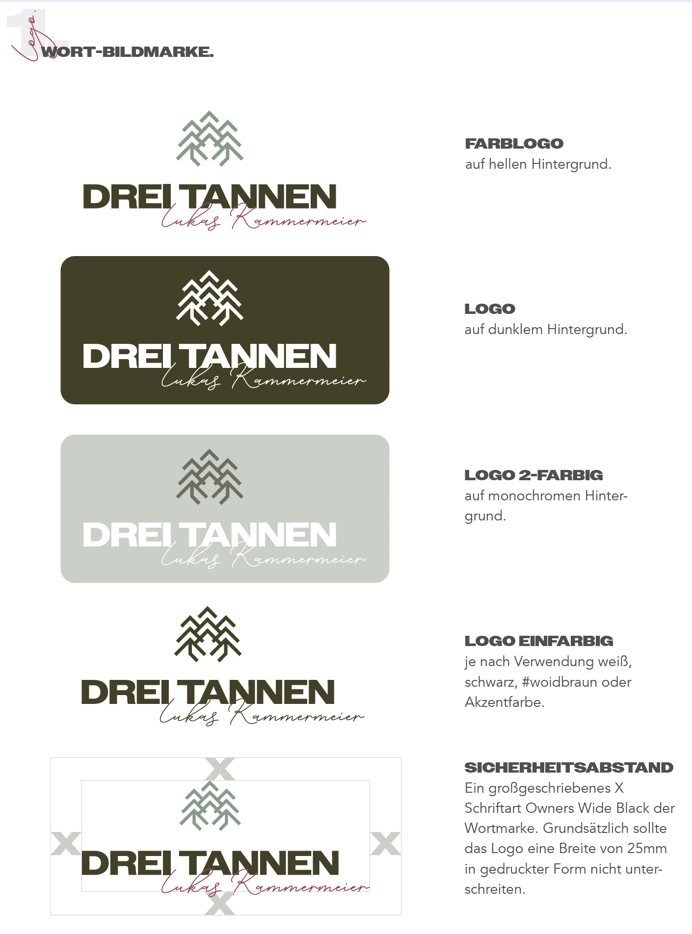 Doch ein Logo allein macht noch keine Marke. Um sicherzustellen, dass die "Drei Tannen" auf allen Kanälen konsistent und professionell auftreten, haben wir ein umfassendes Brand Manual erstellt. Dieser Styleguide ist sozusagen die DNA der Marke und legt alle wichtigen Gestaltungsregeln fest: